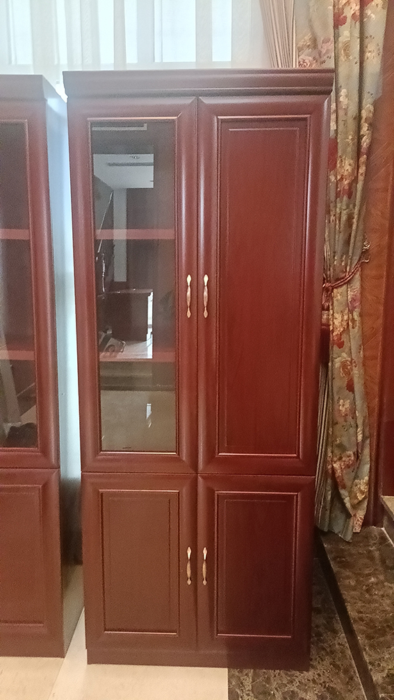書柜尺寸:800*400*2000mm二門書柜,上下分體門結(jié)構(gòu),上書柜左邊為玻璃門,門內(nèi)有2層隔板,用于放置文件書籍等,上書柜右邊為木質(zhì)門板,內(nèi)有掛衣桿,用于放置外套等衣物。下書柜為木質(zhì)門板,內(nèi)有一層隔板。