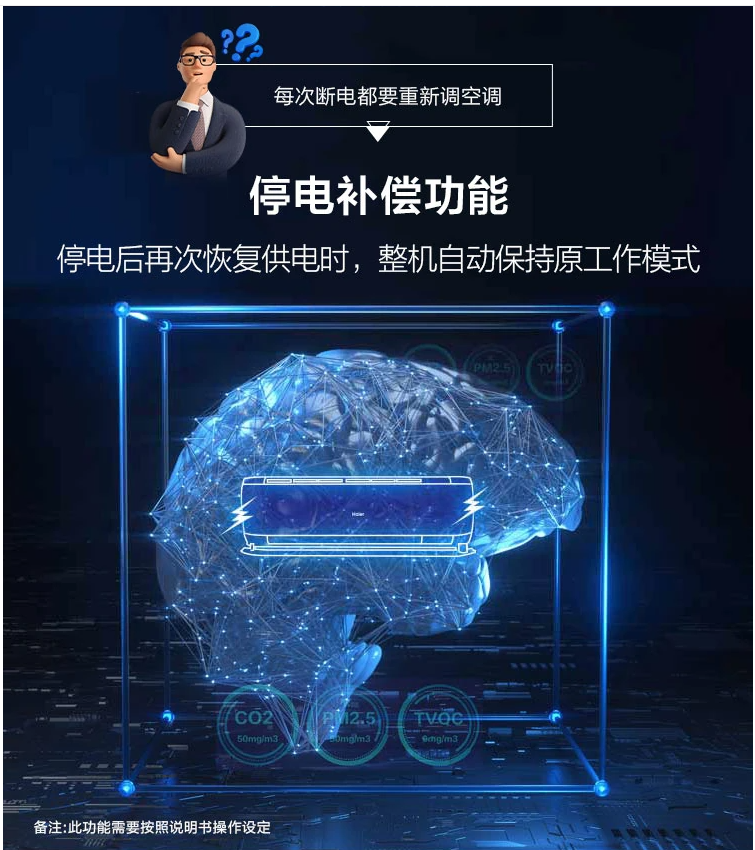 海爾節(jié)能風(fēng)空調(diào),內(nèi)外機(jī)自清潔,可深度清洗蒸發(fā)機(jī)中的灰塵,更有一鍵自清潔功能,保障空氣健康,為您的呼吸保駕護(hù)航;出風(fēng)更潔凈;一鍵PMV,舒適節(jié)能一舉兩得,一鍵開(kāi)啟,空調(diào)自動(dòng)進(jìn)入制冷/制熱熱模式,達(dá)到人體舒適溫度;停電后再次恢復(fù)供電時(shí),整機(jī)自動(dòng)保持原工作模式;還帶有一鍵開(kāi)啟除濕功能,全屋清爽,告別悶熱。